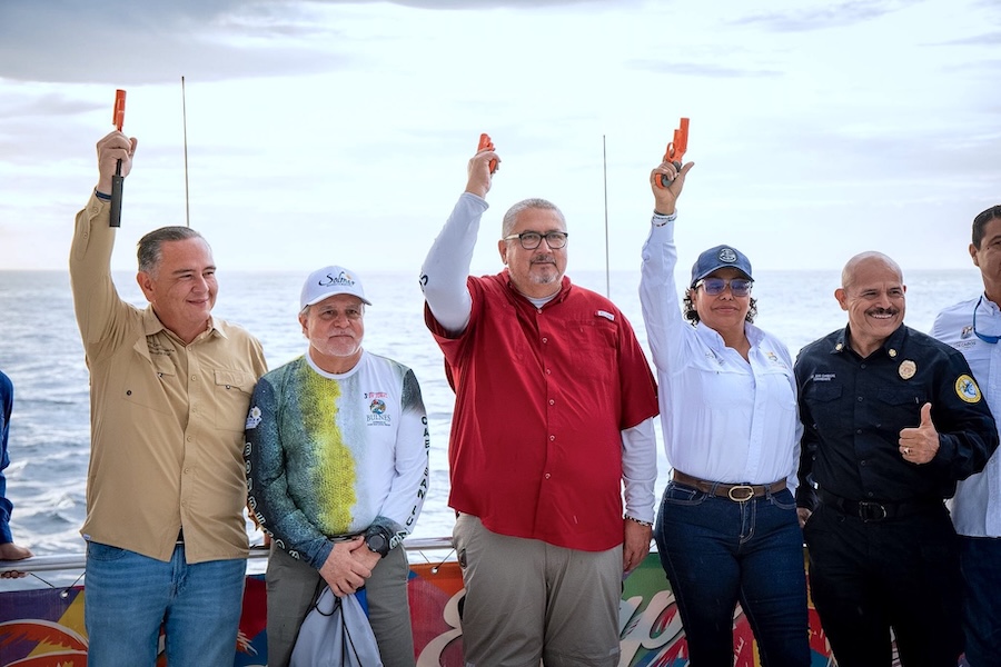 En representación del alcalde de Los Cabos, Christian Agúndez, el director general de Desarrollo Social, Carlos Castro Ceseña, estuvo presente en el disparo de salida del Torneo de Pesca Bulnes 2026, en la bahía de Cabo San Lucas, donde estuvo acompañado por la delegada municipal de Cabo San Lucas Karina de la O Uribe y el director municipal de Pesca Juan Javier García.