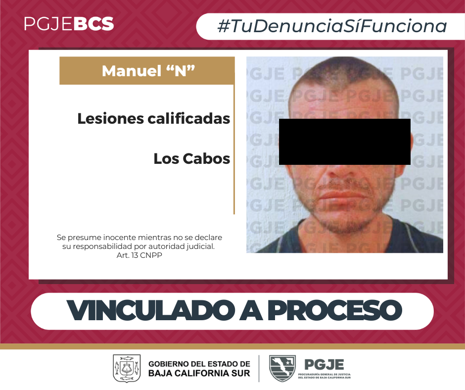 Los Cabos, BCS.- Manuel “N” quedó vinculado a proceso luego de los datos de prueba presentados por el agente del Ministerio Público de la Unidad de Investigación de Delitos Diversos en San José del Cabos, en la audiencia inicial por orden de aprehensión.