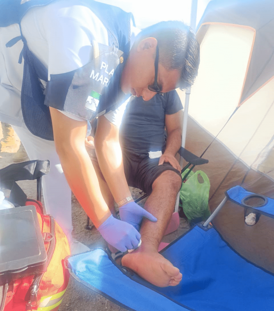 Asimismo, se instalaron 02 puestos de vigilancia, donde elementos salvavidas y de Sanidad Naval brindaron atención médica de primeros auxilios a quienes así lo requirieron.