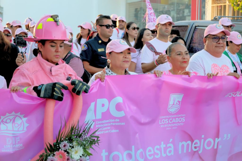 Los Cabos, Baja California Sur.– En el marco del Mes Rosa, el XV Ayuntamiento de Los Cabos, a través del Sistema Municipal para el Desarrollo Integral de la Familia (DIF), organizó la Caminata Rosa 2025 con el objetivo de impulsar la prevención y detección oportuna del cáncer de mama. La caminata partió desde la Jurisdicción Sanitaria hasta la plaza José Antonio Mijares, en San José del Cabo, reuniendo a cientos de personas en una jornada de solidaridad, reflexión y esperanza.