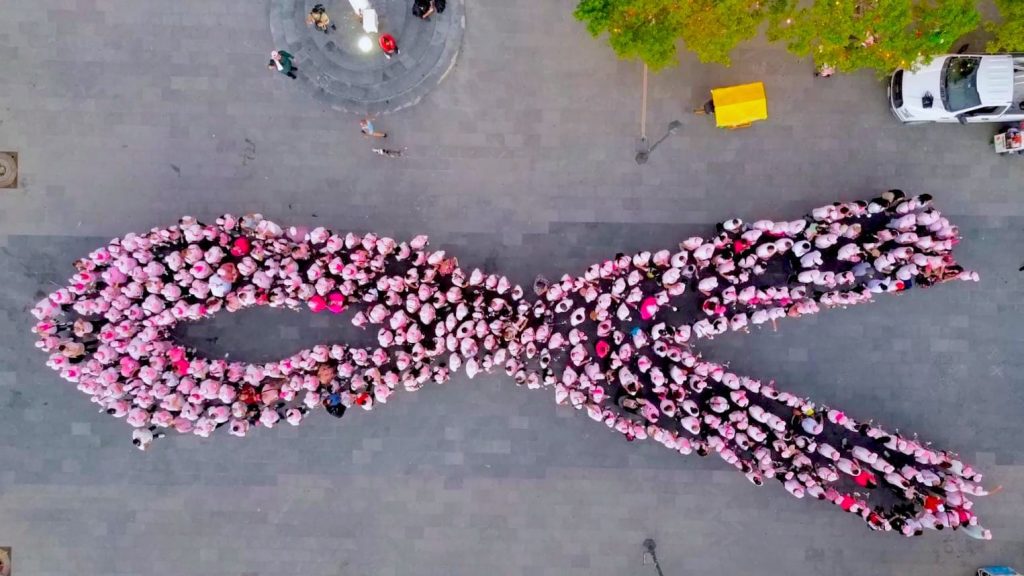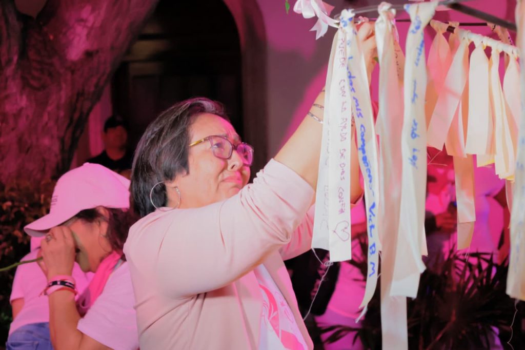 Al finalizar la caminata, las y los participantes formaron un gran lazo humano rosa y colocaron listones en el “árbol de los deseos”, símbolo de unión, esperanza y fortaleza en la lucha contra el cáncer de mama.