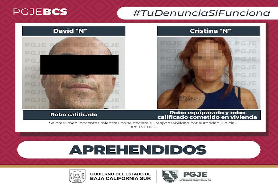 Por otra parte, en el municipio de La Paz, se cumplimentaron dos órdenes de aprehensión en contra de Cristina “N”, de 31 años, por los delitos de robo equiparado y robo calificado cometido en vivienda. La detención se realizó el 26 de diciembre en la colonia La Pasión, por elementos de la Policía Estatal.