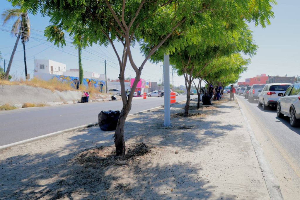 “Contamos con la participación de 200 personas distribuidas 100 en San José del Cabo y 100 en Cabo San Lucas, quienes realizan trabajos de limpieza de camellones centrales, laterales, poda de árboles y barrido de banquetas a lo largo de la carretera federal, desde la entrada de Cabo San Lucas hasta el aeropuerto de San José del Cabo”, indicó.