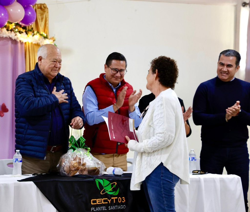 El gobernador del estado, Víctor Manuel Castro Cosío, encabezó la entrega de apoyos en el Plantel CECyT 03 Santiago, como parte de las acciones de la administración estatal para fortalecer la educación y atender necesidades sociales prioritarias.