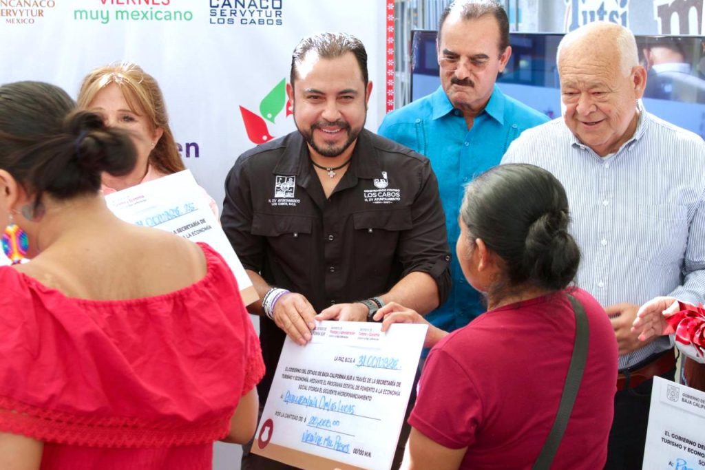 Los Cabos, Baja California Sur.- Durante la gira de trabajo por el municipio de Los Cabos, el gobernador del estado, Víctor Manuel Castro Cosío, acompañado del presidente municipal Christian Agúndez Gómez encabezó la entrega de recursos del Programa Estatal de Fomento a la Economía Social, a través de la Secretaría de Turismo y Economía (Setue), mediante el cual se otorgaron 26 apoyos económicos a personas emprendedoras en la delegación de Cabo San Lucas.