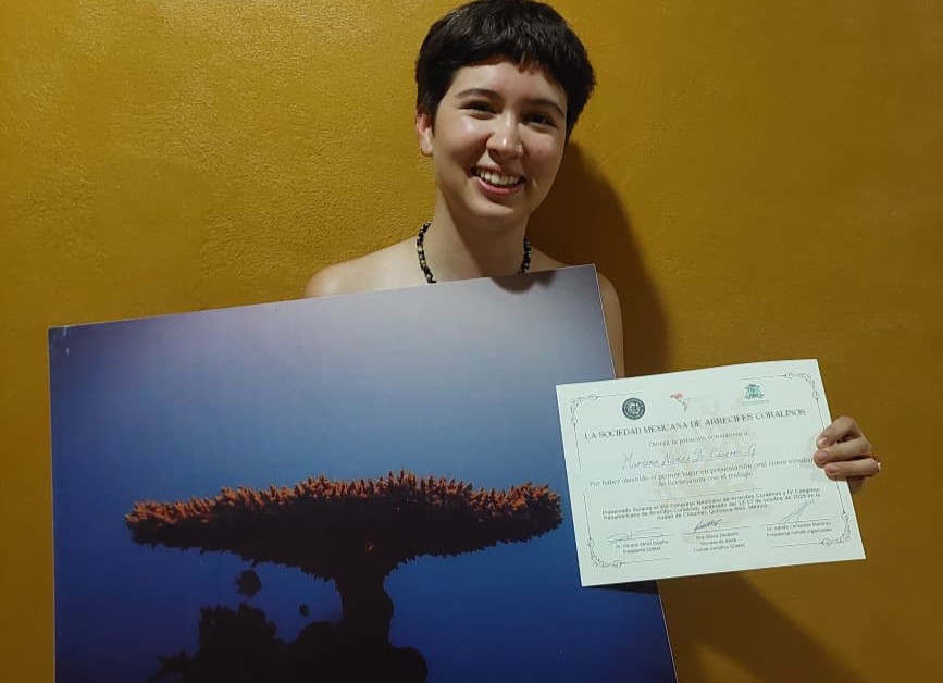 Asimismo, Lizbeth Baeza Aguirre, egresada y ayudante académica del curso de Ecología Marina, obtuvo mención honorífica en el concurso de fotografía “Visiones del arrecife”, en la categoría “Arrecifes del mundo”, por su sobresaliente propuesta visual.