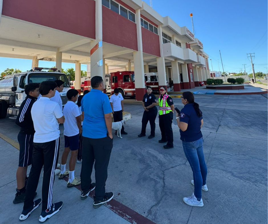 Acercar a las y los jóvenes a la importante labor que desempeñan las corporaciones de Seguridad, como el Honorable Cuerpo de Bomberos en beneficio de la sociedad, es el objetivo de la visita, que la mañana del martes 30 de septiembre, organizó la Dirección de Prevención del Delito y Servicios a la Comunidad de la Procuraduría General de Justicia del Estado (PGJE), para la comunidad estudiantil de la Secundaria José Vasconcelos en La Paz.