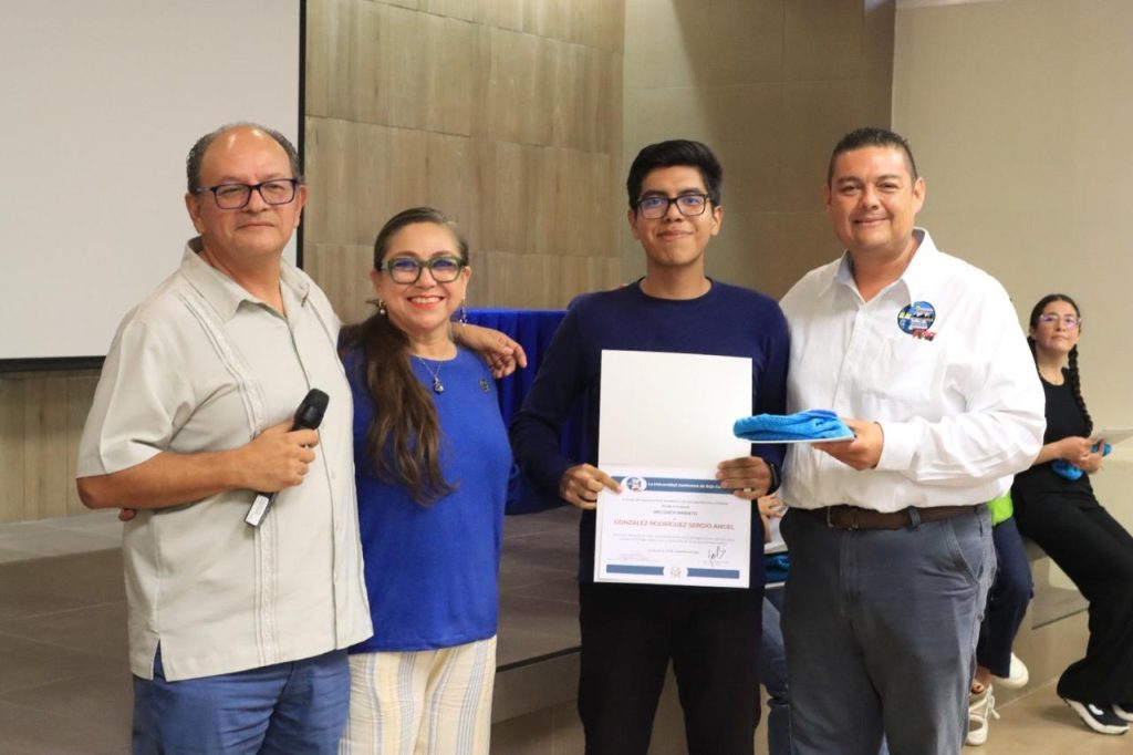 Un momento especial del evento fue la entrega de reconocimientos al estudiantado con mejores promedios de los programas educativos de Biología Marina y Ciencias Ambientales, destacando su dedicación, trayectoria y compromiso con la excelencia académica.
