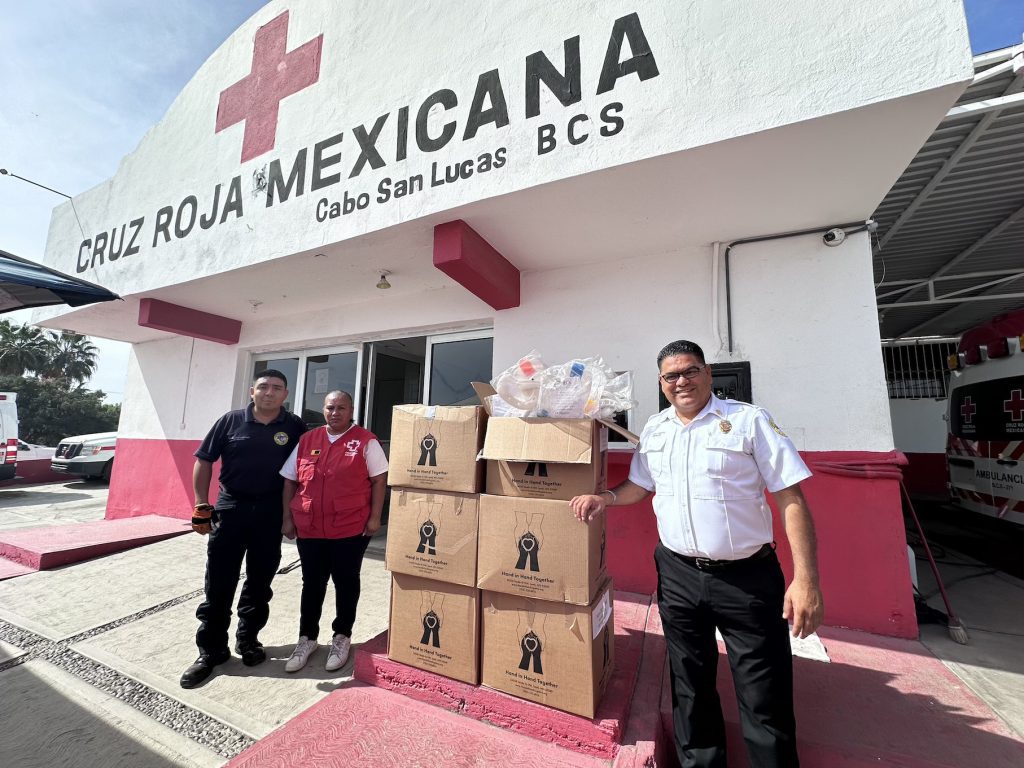 Por su parte, la Cruz Roja Mexicana recibió insumos y equipo de primera respuesta, así como material de protección personal, los cuales fortalecerán sus servicios prehospitalarios que se brindan de manera permanente a la población de Cabo San Lucas.