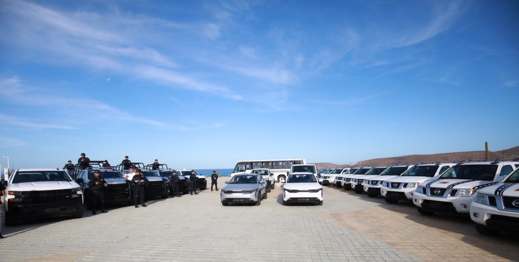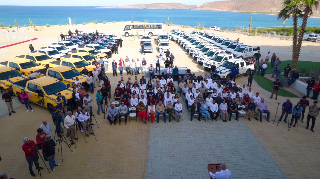 Durante el evento, realizado en la explanada del Centro de Convenciones de La Paz, se entregaron siete vehículos a corporaciones de la Secretaría de Seguridad Pública, tres unidades al Centro de Estudios Científicos y Tecnológicos del Estado (CECyTE), 37 vehículos a distintas áreas operativas estatales, un autobús de 48 plazas para la Preparatoria José María Morelos y Pavón y una camioneta de 12 plazas para la Universidad Autónoma de Baja California Sur (UABCS), campus Guerrero Negro.
