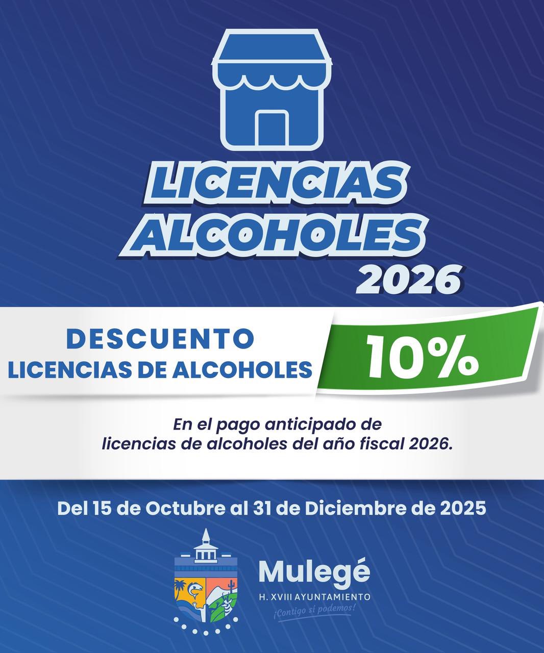 En cuanto al pago de refrendos de licencias comerciales y de alcoholes, se anunció un 15% de descuento en licencias comerciales y 10% en licencias de alcohol, ambos vigentes del 15 de octubre al 31 de diciembre de 2025. También se aplicará un 50% de descuento en multas y recargos de este rubro entre el 15 de octubre de 2025 y el 31 de marzo de 2026.