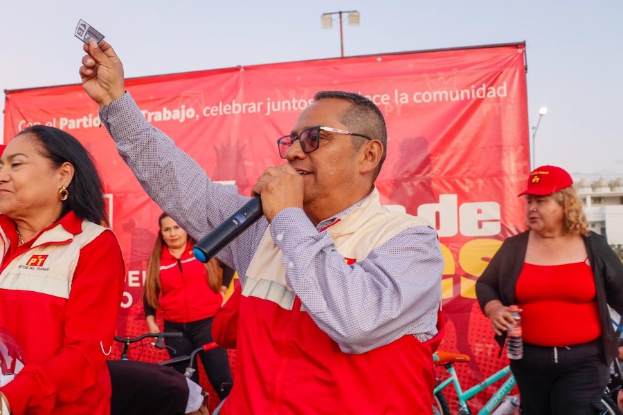 El también dirigente estatal del PT estuvo acompañado por la sindica municipal Nélida Alfaro, el regidor José Manuel Larumbe Pineda, el coordinador de ZOFEMAT Rafael Álvarez, Verónica Olvera, Rox Larumbe, Brande Gálvez, Braulia Nava, entre otros cuadros distinguidos del Partido del Trabajo.