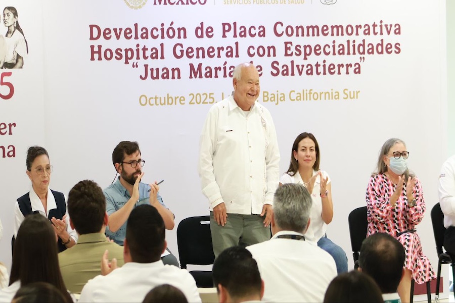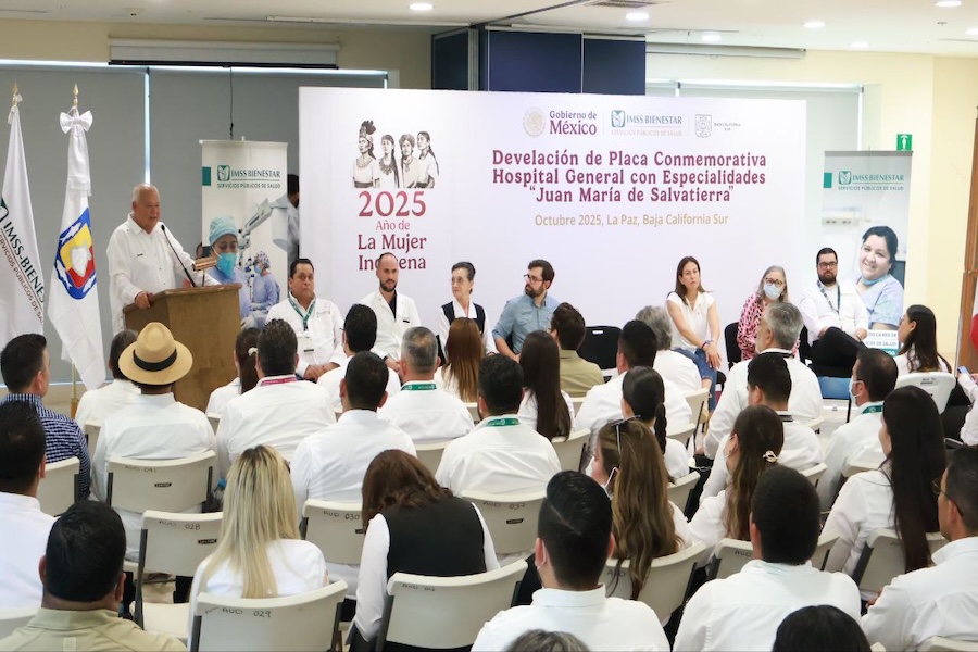 Con motivo de la conversión del Hospital General Juan María de Salvatierra en Hospital de Especialidades IMSS-Bienestar, el gobernador Víctor Manuel Castro Cosío y el director general del IMSS-Bienestar, Alejandro Svarch Pérez, encabezaron la develación de la placa conmemorativa en esta unidad médica de referencia en Baja California Sur.