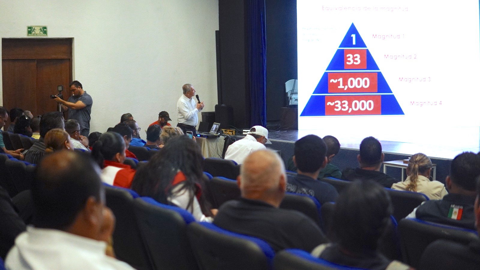 Los Cabos, Baja California Sur.- Como parte de las acciones del programa especial implementado por la Dirección Municipal de Protección Civil Municipal, se llevó a cabo una conferencia magistral impartida por el Dr. Carlos Miguel Valdéz González, investigador del Departamento de Sismología del Instituto de Geofísica de la Universidad Autónoma de México (UNAM), con el objetivo de acercar información especializada a la comunidad sobre los recientes eventos sísmicos en el municipio.
