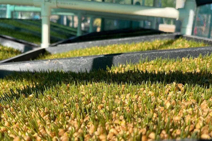 El sistema utiliza tecnología de invernadero para germinar semillas como maíz, sorgo, alfalfa o trigo en charolas, sin necesidad de suelo y empleando únicamente agua y soluciones nutritivas. En un ciclo de 7 a 14 días se producen plántulas de alto valor nutricional, con uso eficiente del agua y del espacio, ideales para zonas áridas.