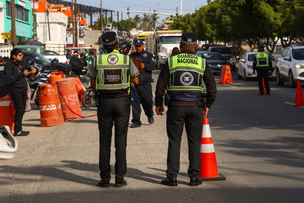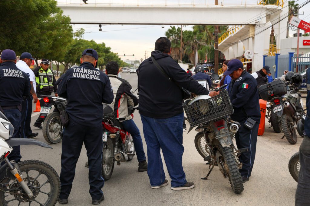 Los Cabos, Baja California Sur.– La Dirección General de Seguridad Pública, Policía Preventiva y Tránsito Municipal, en coordinación con la Guardia Nacional, implementó un punto de revisión interinstitucional para motocicletas sobre la carretera Transpeninsular, a la altura de la colonia Guaymitas, en San José del Cabo, como parte de las acciones preventivas en beneficio de la población.