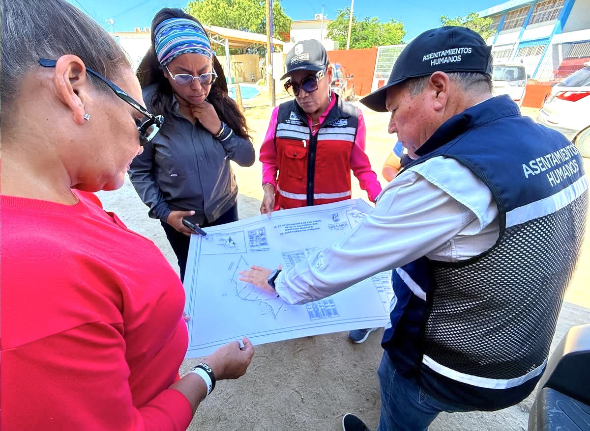 El director general de Desarrollo Social, Carlos Castro Ceseña, informó que este levantamiento forma parte del seguimiento a las gestiones impulsadas por el gobierno municipal para avanzar en la regularización de los terrenos. Para ello, participaron la delegada de Cabo San Lucas Karina de la O Uribe; la síndica municipal Nélida Dolores Alfaro González; el director municipal de Asentamientos Humanos Jorge Sánchez Sandoval; y la directora municipal de Organización y Participación Ciudadana, Judith Pérez Herrera, quienes realizaron visitas domiciliarias para recabar la información necesaria.