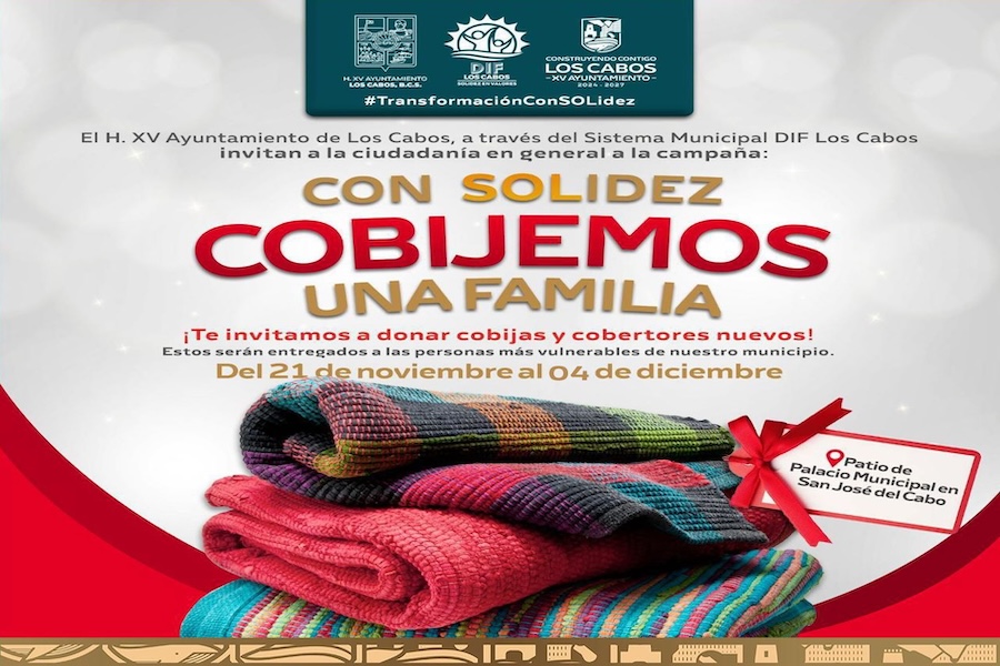 Con el propósito de brindar apoyo a las familias en situación de vulnerabilidad durante la temporada invernal, el XV Ayuntamiento de Los Cabos, a través del Sistema Municipal para el Desarrollo Integral de la Familia (DIF), dio inicio a la campaña “Con SOLidez, Cobijemos a una Familia”, una iniciativa solidaria que busca recolectar cobijas y cobertores nuevos para ser entregados a quienes más lo necesitan.