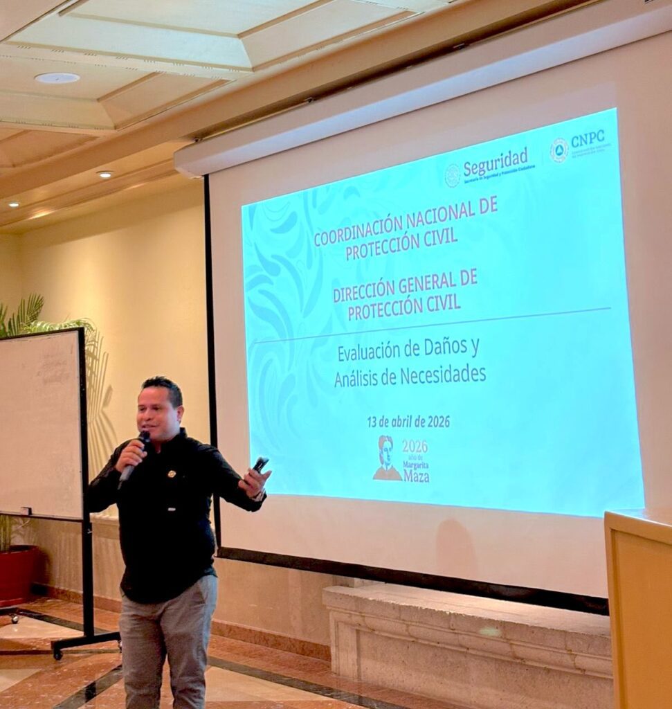 Detalló que la capacitación se desarrollará los días 13 y 14 de abril, con el respaldo del Sistema Nacional de Protección Civil y el aval del Centro Nacional de Prevención de Desastres (CENAPRED), lo que permite alinear las acciones municipales con las directrices federales en materia de gestión de riesgos.