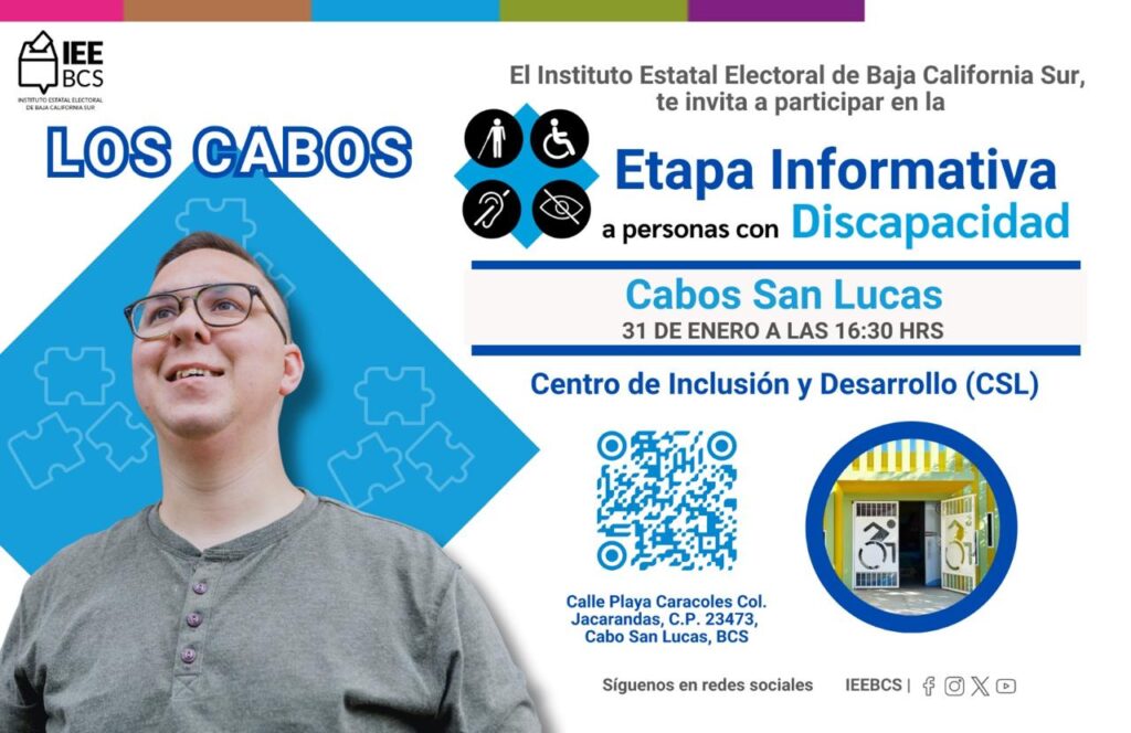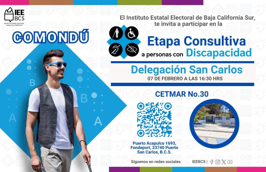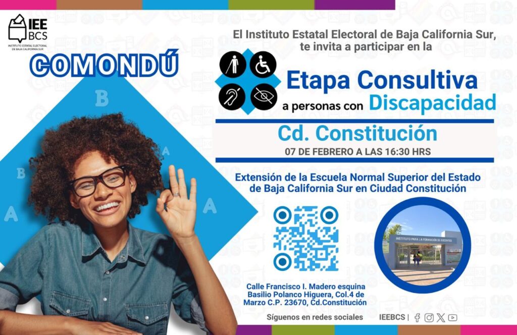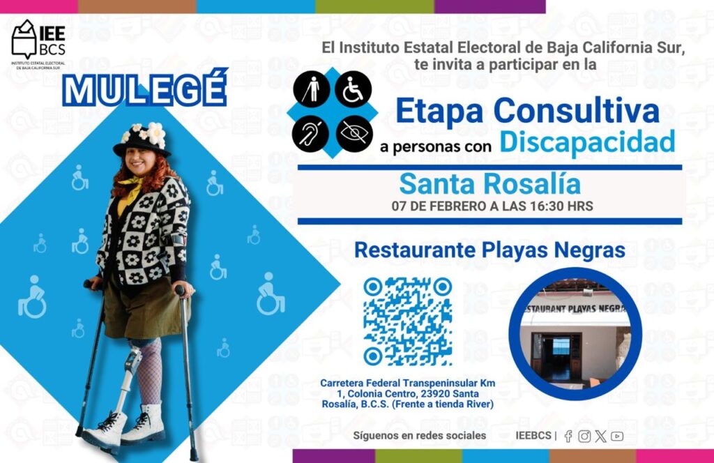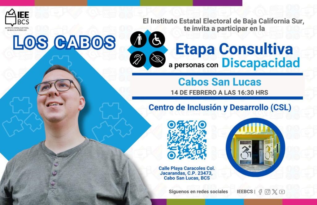 Los Cabos.- El Instituto Estatal Electoral de Baja California Sur (IEEBCS) lleva a cabo cinco consultas dirigidas a grupos de atención prioritaria, con el objetivo de recabar opiniones que permitan fortalecer y, en su caso, proponer acciones afirmativas que garanticen su participación en los próximos procesos electorales.