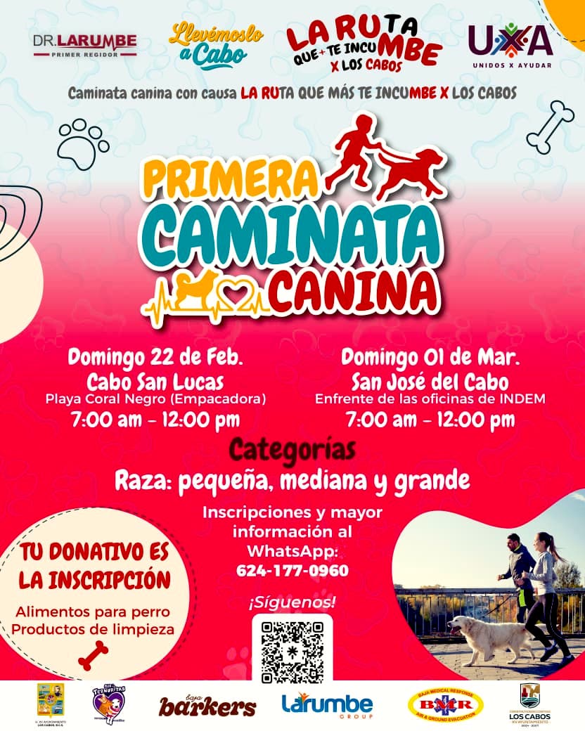 Los Cabos, Baja California Sur.– A través de la Primera Regiduría, encabezada por el doctor José Manuel Larumbe Pineda, se realizará la Primera Caminata Canina – LA RUta que más te incuMBE X Los Cabos, una actividad recreativa con causa enfocada en la convivencia responsable entre familias y sus mascotas.