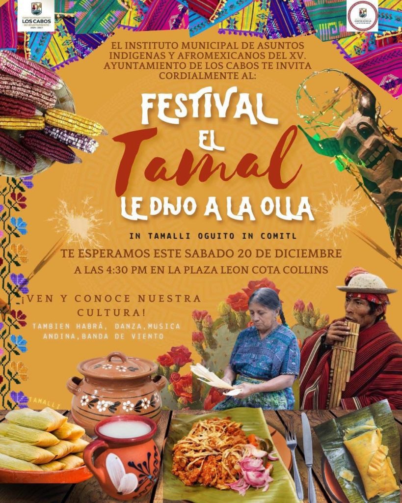 Los Cabos, Baja California Sur.- El XV Ayuntamiento de Los Cabos, a través del Instituto Municipal de Asuntos Indígenas y Afromexicanos (IMAIA) invitó a la ciudadanía a participar en el Festival “El Tamal le Dijo a la Olla”, una celebración dedicada a preservar y promover las raíces, tradiciones y expresiones culturales de los pueblos indígenas y afromexicanos del municipio.