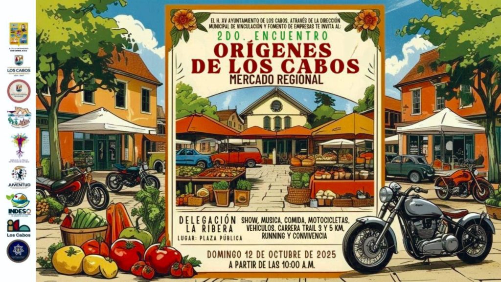 Los Cabos, Baja California Sur.– El XV Ayuntamiento de Los Cabos, a través de la Dirección General de Fomento Económico y Vinculación Empresarial, invita a la ciudadanía a participar en el Segundo Encuentro “Raíces y Rutas, Orígenes de Los Cabos”, que se llevará a cabo el próximo domingo 12 de octubre en la delegación de La Ribera.