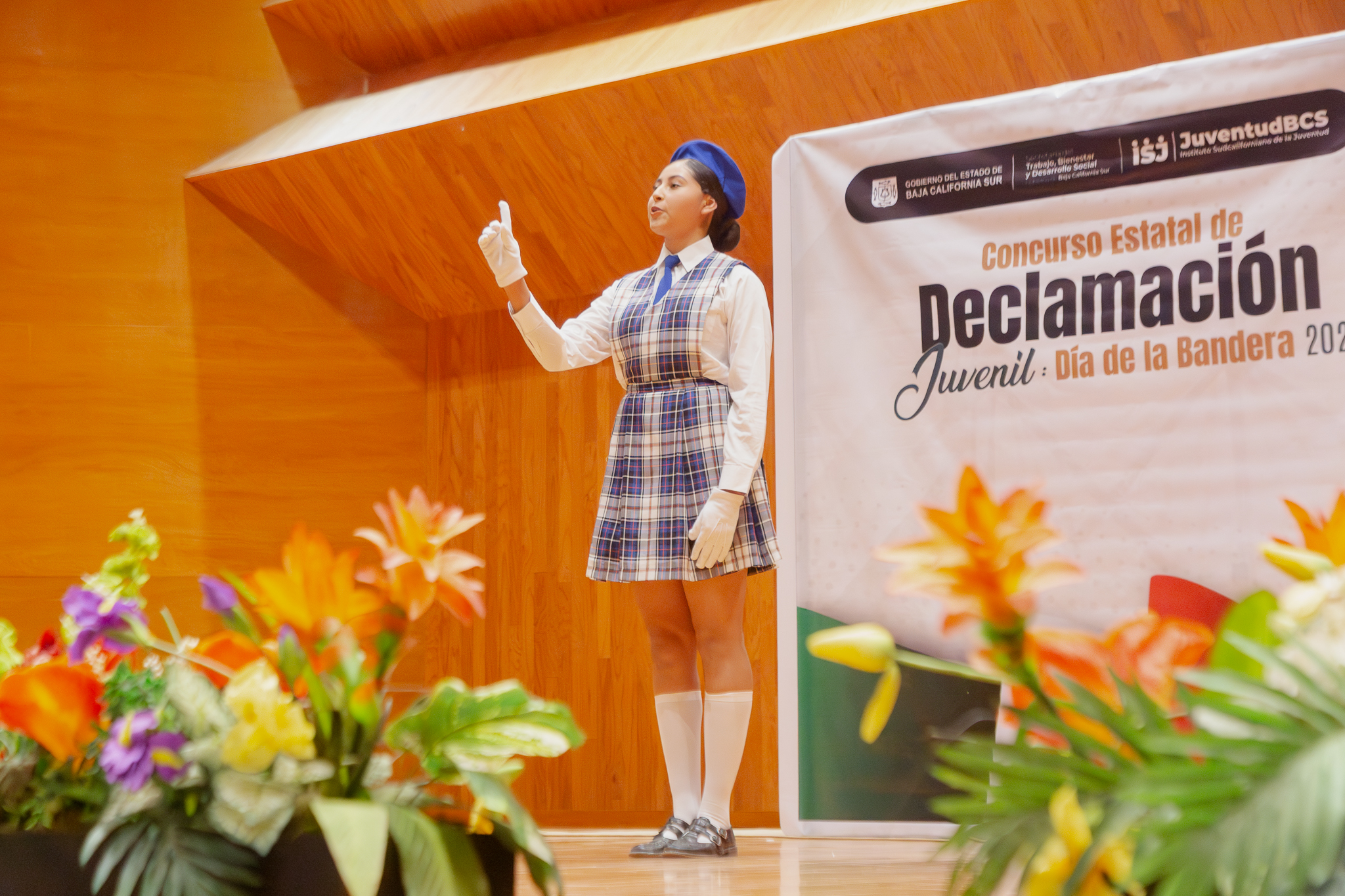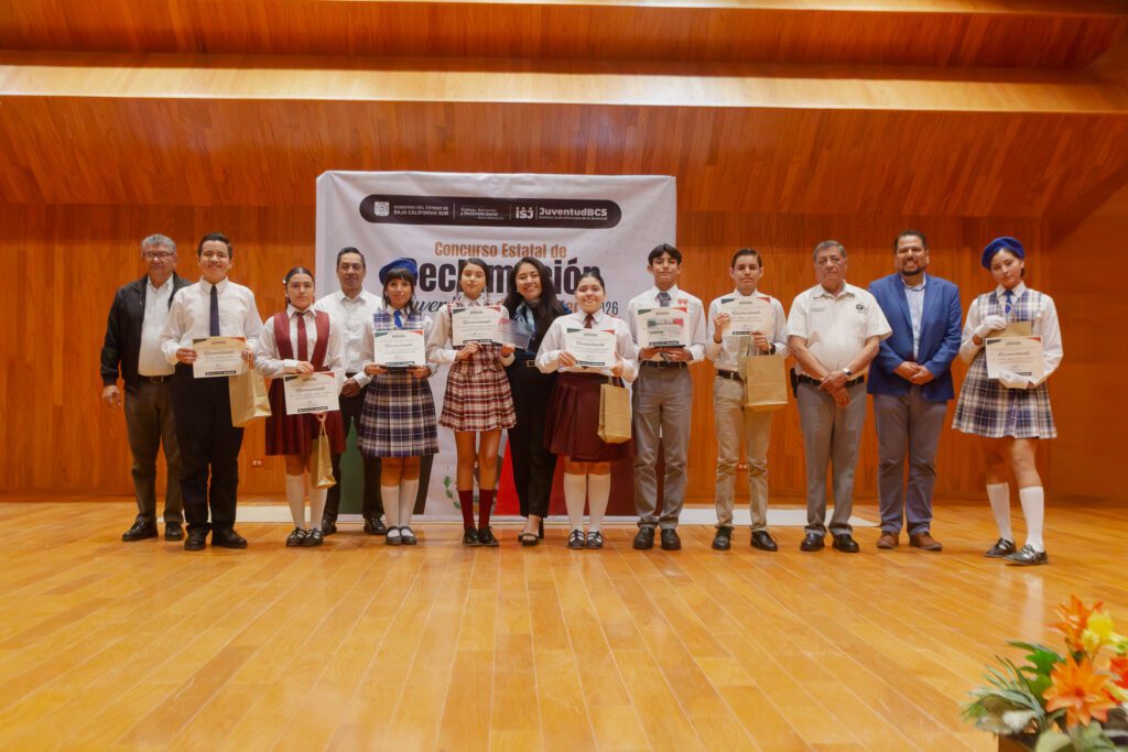 Con motivo del Día de la Bandera, el Instituto Sudcaliforniano de la Juventud (ISJ) organizó el Concurso Estatal de Declamación 2026 en la sala de conciertos de la Escuela de Música, en la ciudad de La Paz, con la participación de jóvenes representantes de los cinco municipios de Baja California Sur. La actividad tuvo como objetivo fomentar la expresión artística, los valores cívicos y el amor por la patria.