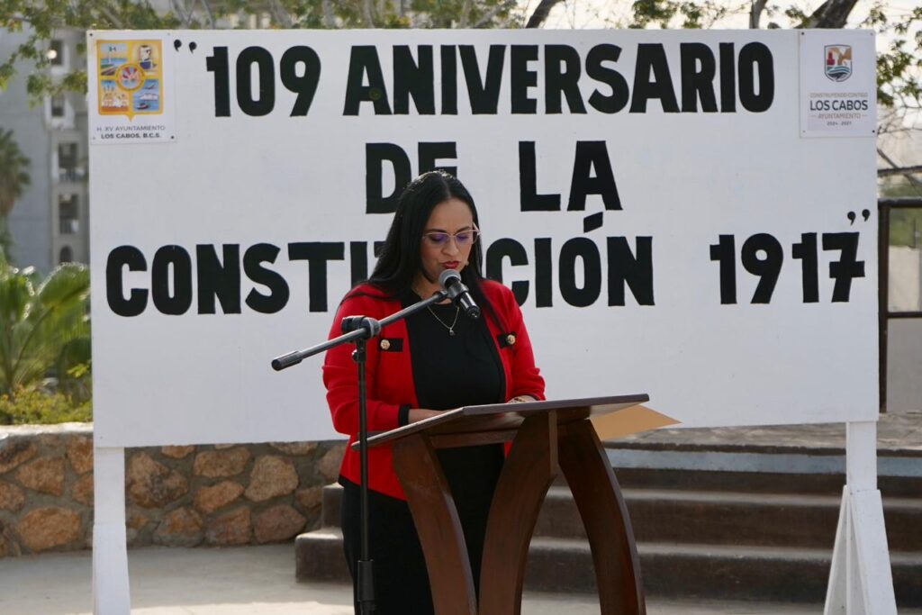 Los Cabos, Baja California Sur.– En el marco del 109º aniversario de la promulgación de la Constitución Política de los Estados Unidos Mexicanos de 1917, la Delegación de Cabo San Lucas llevó a cabo un acto cívico conmemorativo en el que se destacó la relevancia histórica, social y jurídica de la Carta Magna, promulgada el 5 de febrero. La ceremonia se realizó en la explanada del Cerrito del Timbre.