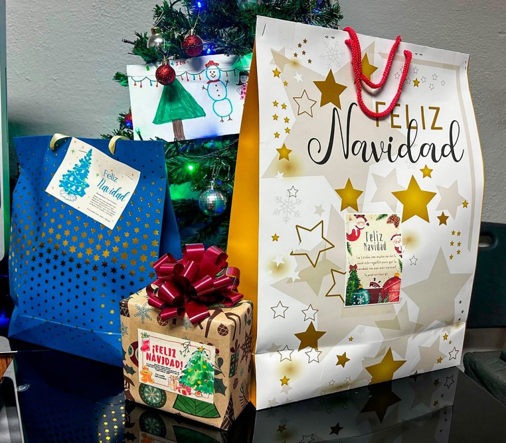 La dinámica consistió en atender las cartitas elaboradas por las propias niñas y niños de la comunidad, en las que expresaron qué regalo deseaban recibir durante esta Navidad, permitiendo una entrega más cercana y significativa.