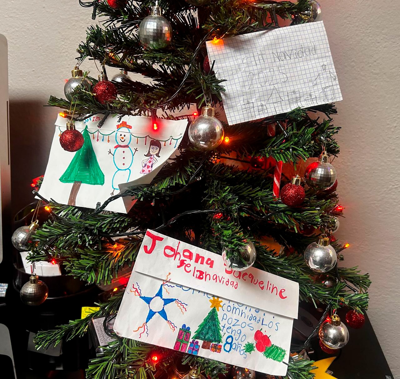 La dinámica consistió en atender las cartitas elaboradas por las propias niñas y niños de la comunidad, en las que expresaron qué regalo deseaban recibir durante esta Navidad, permitiendo una entrega más cercana y significativa.