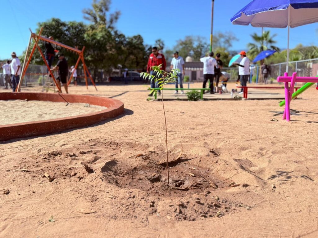 Las actividades iniciaron con trabajos de rehabilitación y reforestación en el parque del centro de la comunidad, donde se realizaron labores para mejorar este espacio de recreación en beneficio de las y los habitantes.