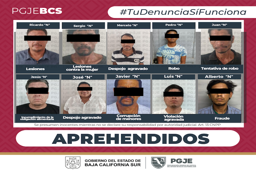 Logra PGJE la detención de 11 civiles con cuentas pendientes con la justicia de BCS