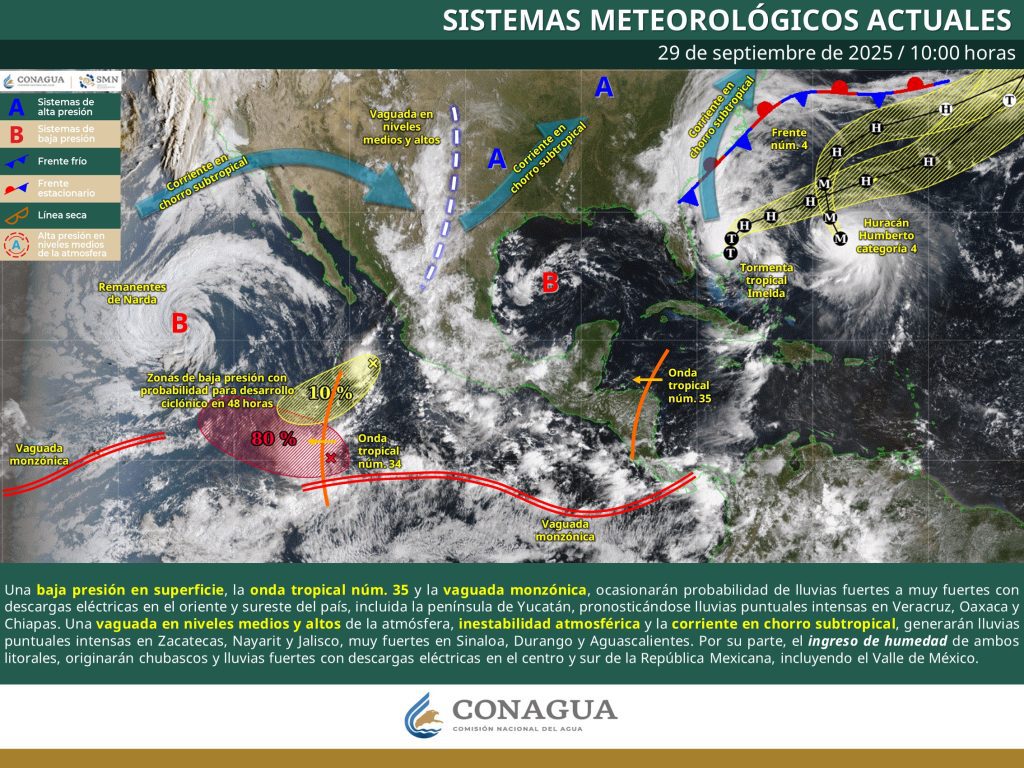 Mientras en el municipio se mantienen condiciones estables, en el océano Pacífico se desarrolla un sistema de baja presión con potencial ciclónico, al sur de las costas mexicanas. De acuerdo con el Servicio Meteorológico Nacional, este fenómeno presenta una probabilidad creciente de evolucionar a tormenta tropical, con el posible nombre de Octave.