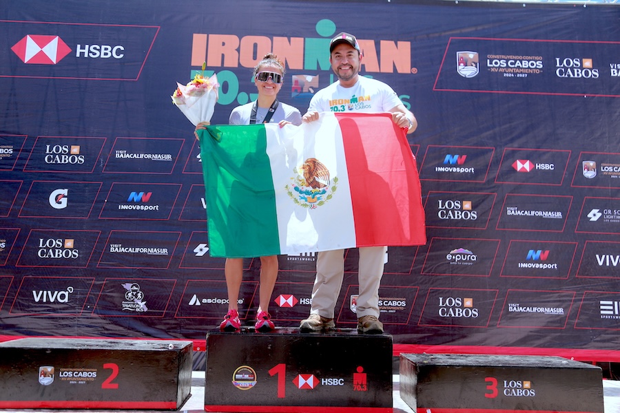 Mario Bustos de Argentina y Amalia Sánchez de México, los ganadores del IRONMAN 70.3 Los Cabos