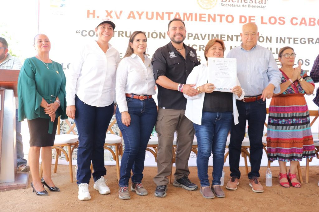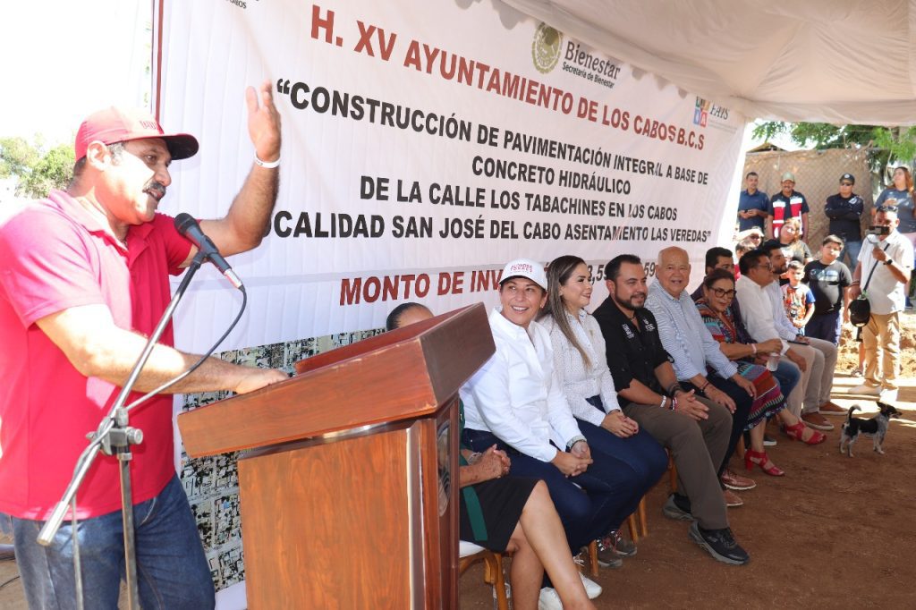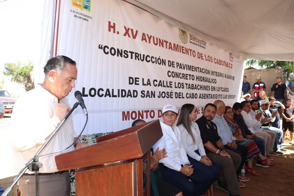 San José del Cabo.– El gobernador del estado, Víctor Castro Cosío, y el presidente municipal de Los Cabos, Christian Agúndez Gómez, dieron inicio a la obra de pavimentación de la calle Tabachines, ubicada en la colonia Las Veredas, con una inversión de 13.5 millones de pesos.