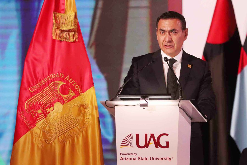 En su discurso, el Rector, Lic. Antonio Leaño Reyes, destacó que, a 91 años de su fundación, la UAG sigue siendo una institución innovadora, que fortalece sus programas académicos y que impulsa la investigación y vinculación internacional que amplían las oportunidades de los estudiantes.