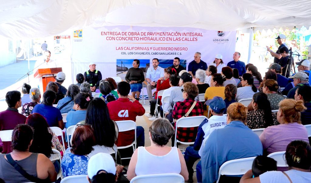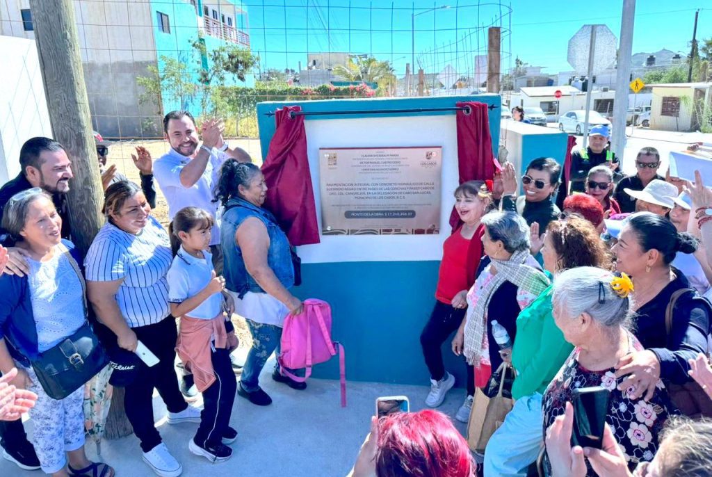 Los Cabos, Baja California Sur.- El XV Ayuntamiento de Los Cabos, a través de la Dirección General de Obras Públicas y Asentamientos Humanos, realizó la entrega oficial de diversas obras de pavimentación integral con concreto hidráulico en vialidades prioritarias de la colonia Los Cangrejos, en Cabo San Lucas, como parte del Plan de Obras 2025.