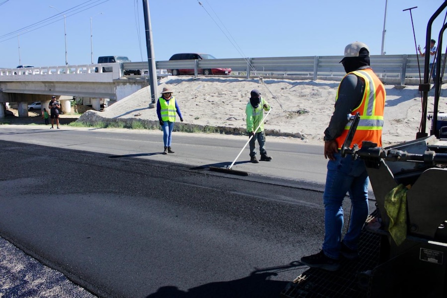 “Aquí me encuentro en el puente de La Sanluqueña para supervisar la obra, este trabajo se realiza durante el día, ya que la máquina Finisher que se utiliza para este tipo de renivelación la tiene una sola empresa en Los Cabos. A pesar de ello, logramos coordinar esfuerzos para que el resultado fuera óptimo. Como lo instruyó el alcalde Christian Agúndez Gómez, esta vialidad ya presentaba un deterioro severo, y hoy podemos decir que la ciudadanía cuenta con un pavimento completamente nuevo”, señaló el funcionario municipal.