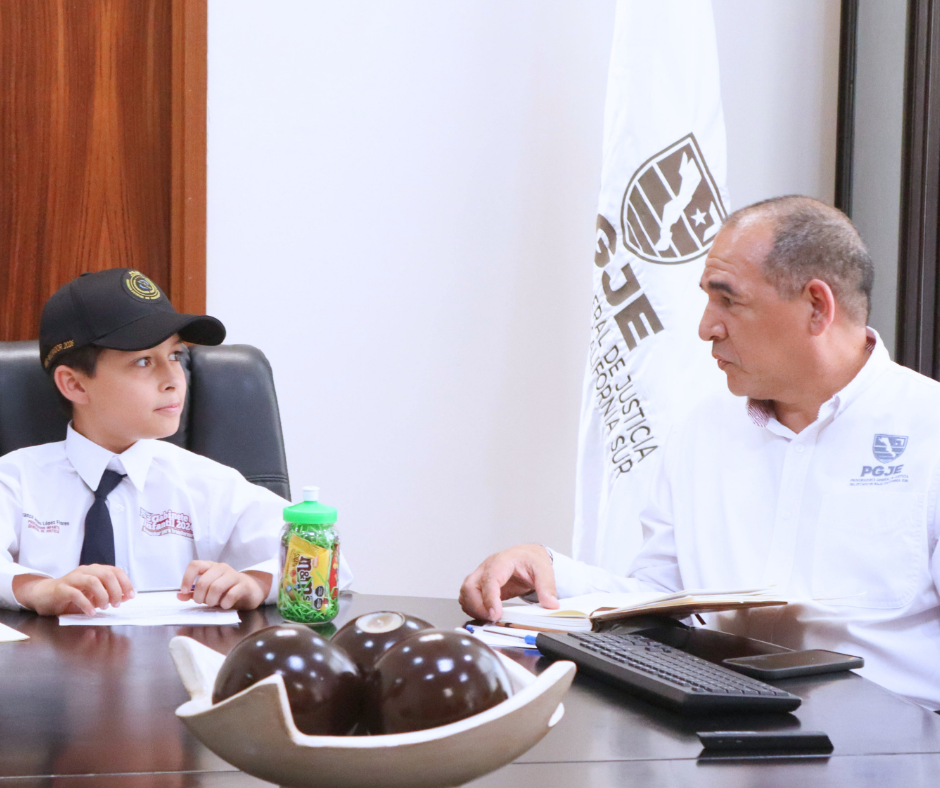 El Niño Procurador, acompañado por el Procurador de Justicia del Estado, Antonio López Rodríguez, realizó una jornada de trabajo que incluyó visita al Centro de Justicia Penal de La Paz, donde se le explicaron los procesos de impartición de justicia.