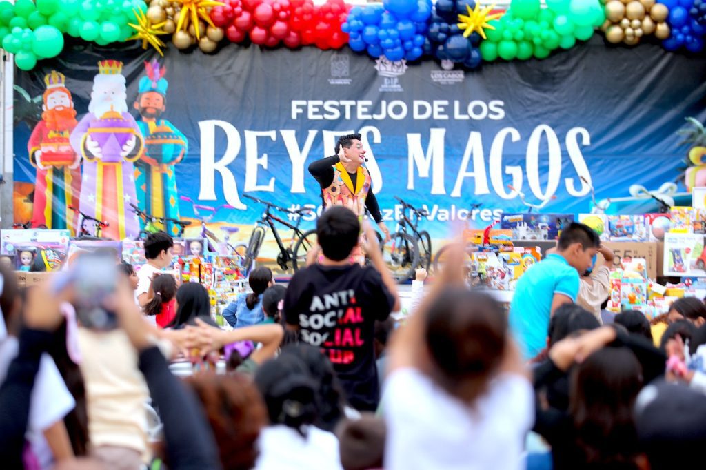 Los Cabos, Baja California Sur.– La tarde de este viernes, niñas y niños se dieron cita en la plaza Mijares de San José del Cabo para participar en el festejo del Día de Reyes Magos, organizado por el Sistema Municipal para el Desarrollo Integral de la Familia (DIF) Los Cabos.
