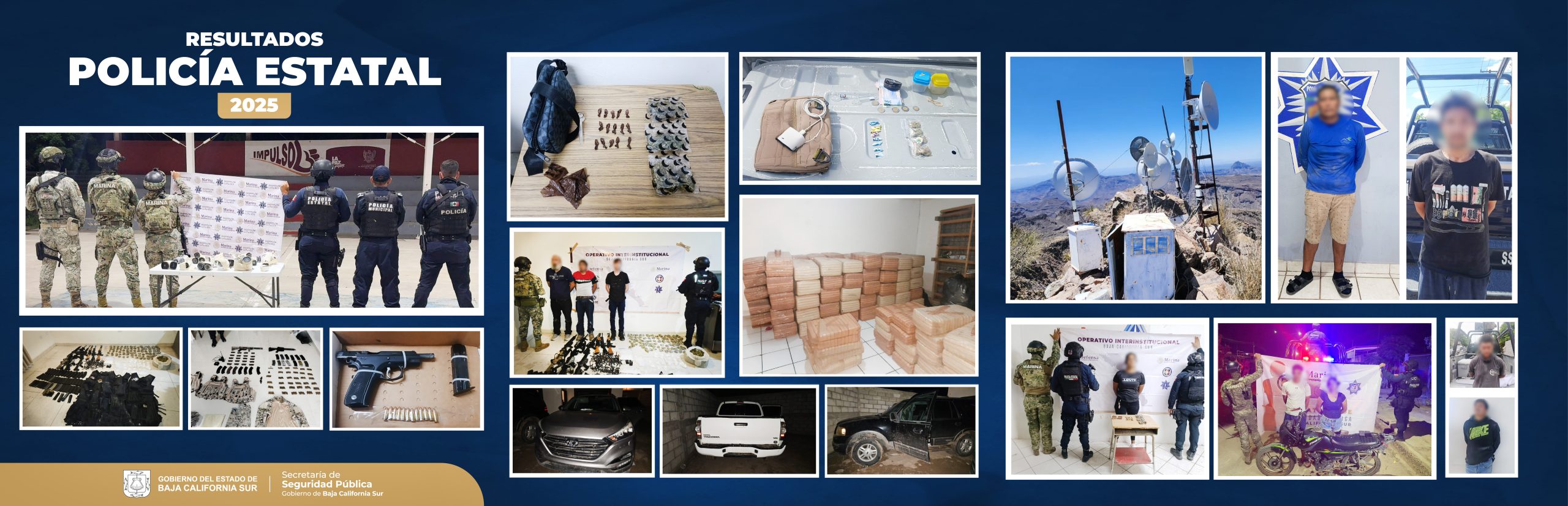 La Secretaría de Seguridad Pública del Estado (SSPE), informa que derivado de los operativos de seguridad y vigilancia desplegados durante el 2025, se logró la detención en flagrancia de 308 personas por delitos del fuero común y federal, además del aseguramiento de narcóticos, armas y vehículos con reporte de robo.