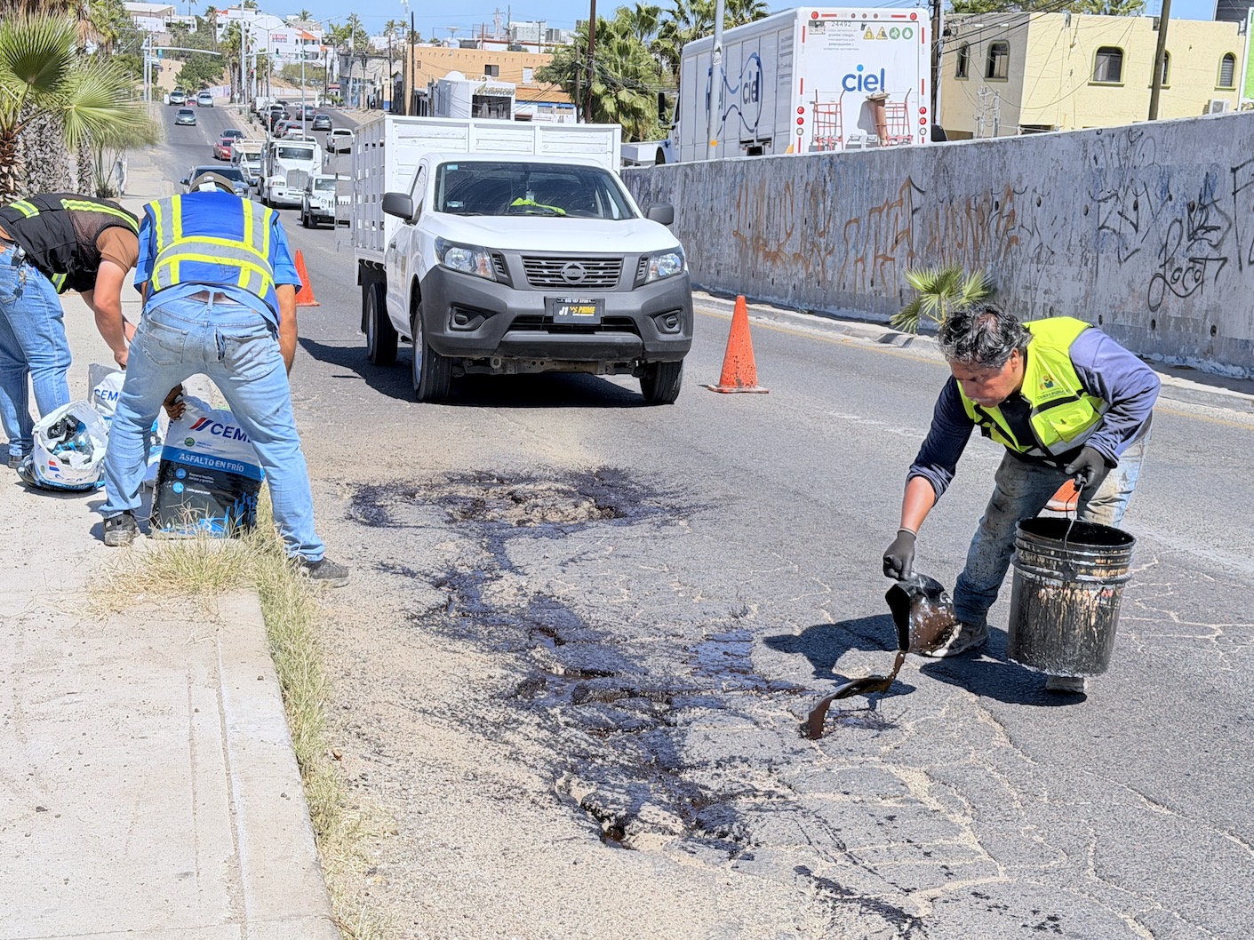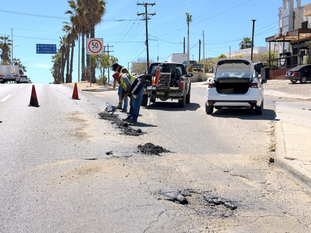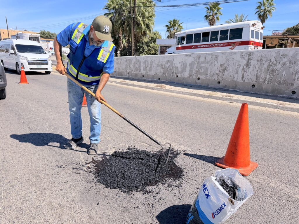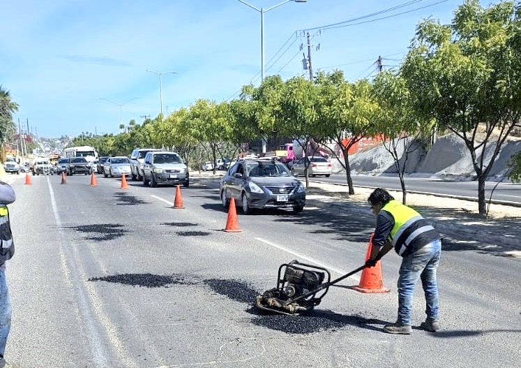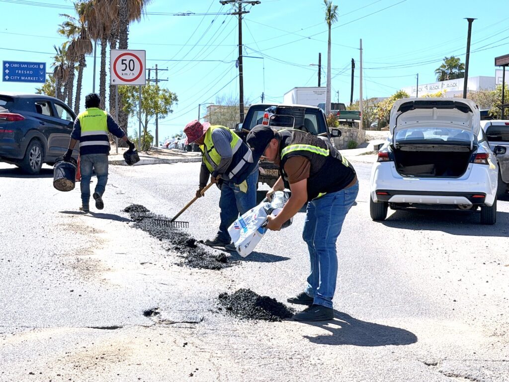 Por instrucción del presidente municipal, Christian Agúndez Gómez y bajo la supervisión del director general de Obras Públicas y Asentamientos Humanos, Christopher Enríquez González, se realizaron trabajos de bacheo en las colonias Guaymitas, Rosarito y Magisterial en San José del Cabo, así como en tramos estratégicos de la carretera Transpeninsular.