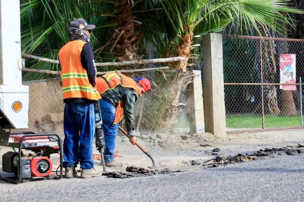 Los Cabos, Baja California Sur.– Con el objetivo de mejorar las condiciones de las vialidades y atender las solicitudes de la ciudadanía, el Oficial Mayor del XV Ayuntamiento de Los Cabos, Ing. Carlos Alberto Beltrán Olmeda, supervisó trabajos del programa Caza Baches en la delegación de Santiago, acciones realizadas en coordinación con la delegada Aracely Cota Ruiz.
