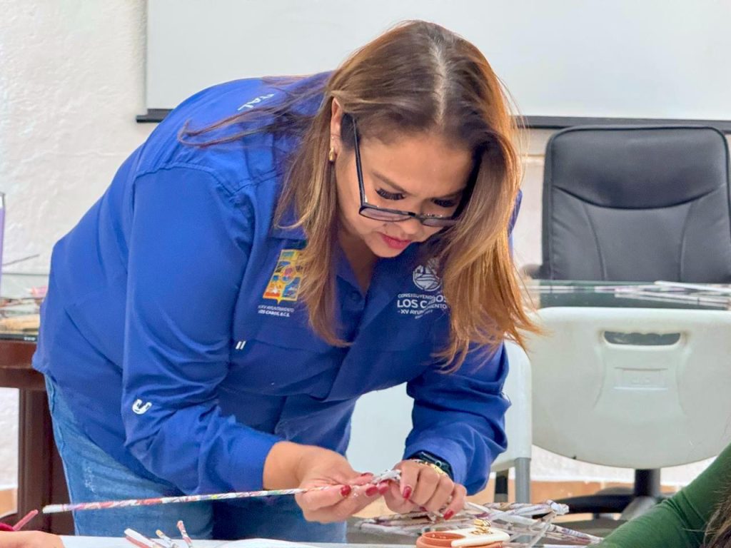Los Cabos, Baja California Sur.- En atención a la solicitud de la delegada municipal de Cabo San Lucas, Karina de la O Uribe, la Dirección General de Ecología y Medio Ambiente, a través de la Dirección Municipal de Educación, Divulgación y Promoción Ambiental, llevó a cabo un taller de elaboración de manualidades navideñas con material reciclado en las instalaciones delegacionales.