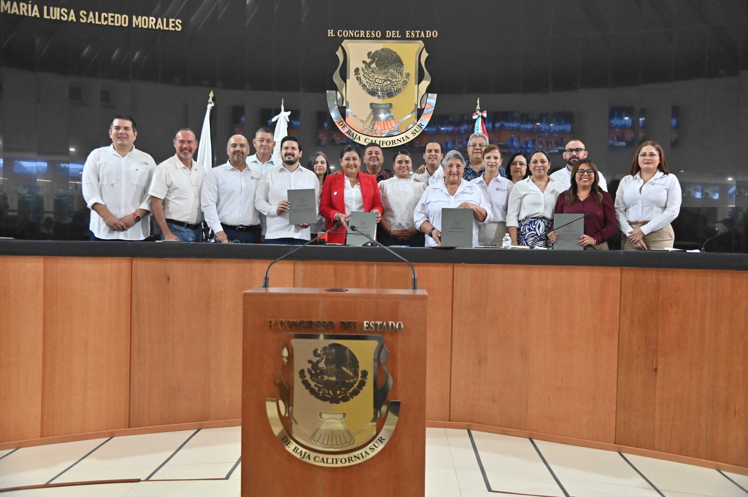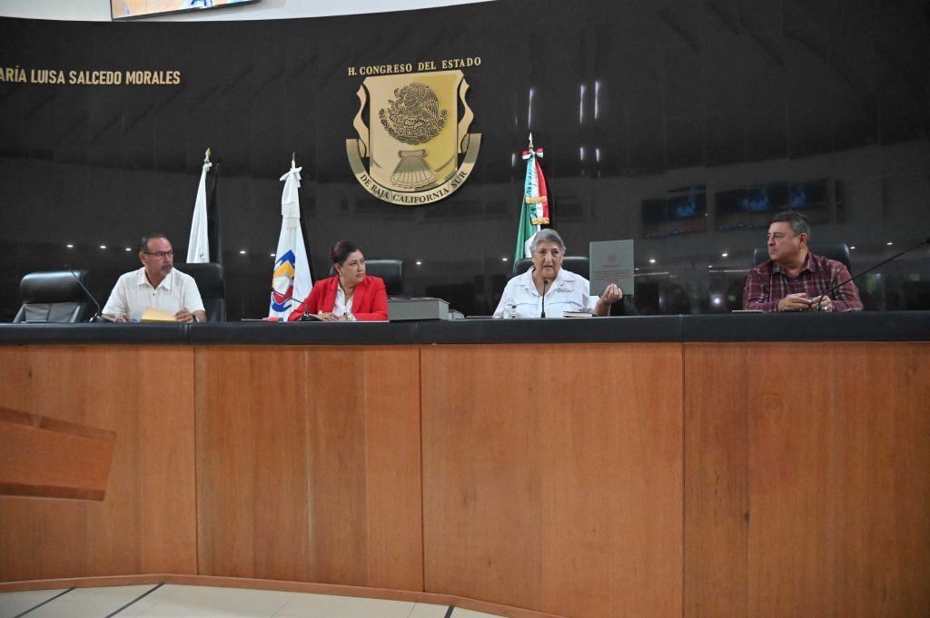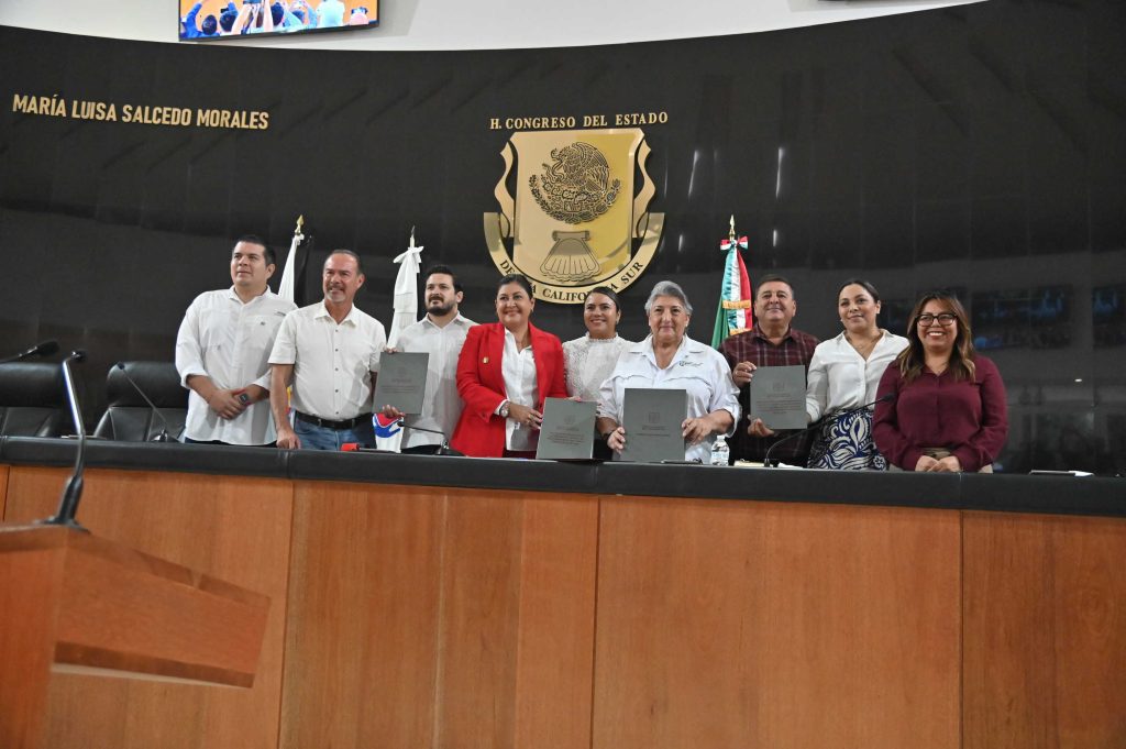 En representación del Poder Legislativo, la presidenta de la Mesa Directiva del Congreso del Estado de Baja California Sur, diputada Cristina Contreras Rebollo, junto con diputadas y diputados integrantes de la XVI Legislatura, así como la diputada Guadalupe Vázquez Jacinto, presidenta de la Comisión de Asuntos Fiscales y Administrativos, recibieron el Paquete Económico 2026 del Gobierno del Estado, entregado por la Secretaria de Finanzas y Administración, Bertha Montaño Cota.