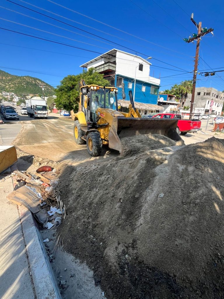 Asimismo, en la avenida Paseo Cabo de Oro, de la colonia Los Cangrejos, se retiraron nueve viajes de tierra y escombro, material que posteriormente se utilizó para el relleno de la calle Lirio en la colonia Ampliación Paraíso. En la colonia Los Venados, sobre la calle Playa Camela, se llevó a cabo el retiro de cacharros con apoyo de dos camiones de volteo, contribuyendo al saneamiento de la zona.