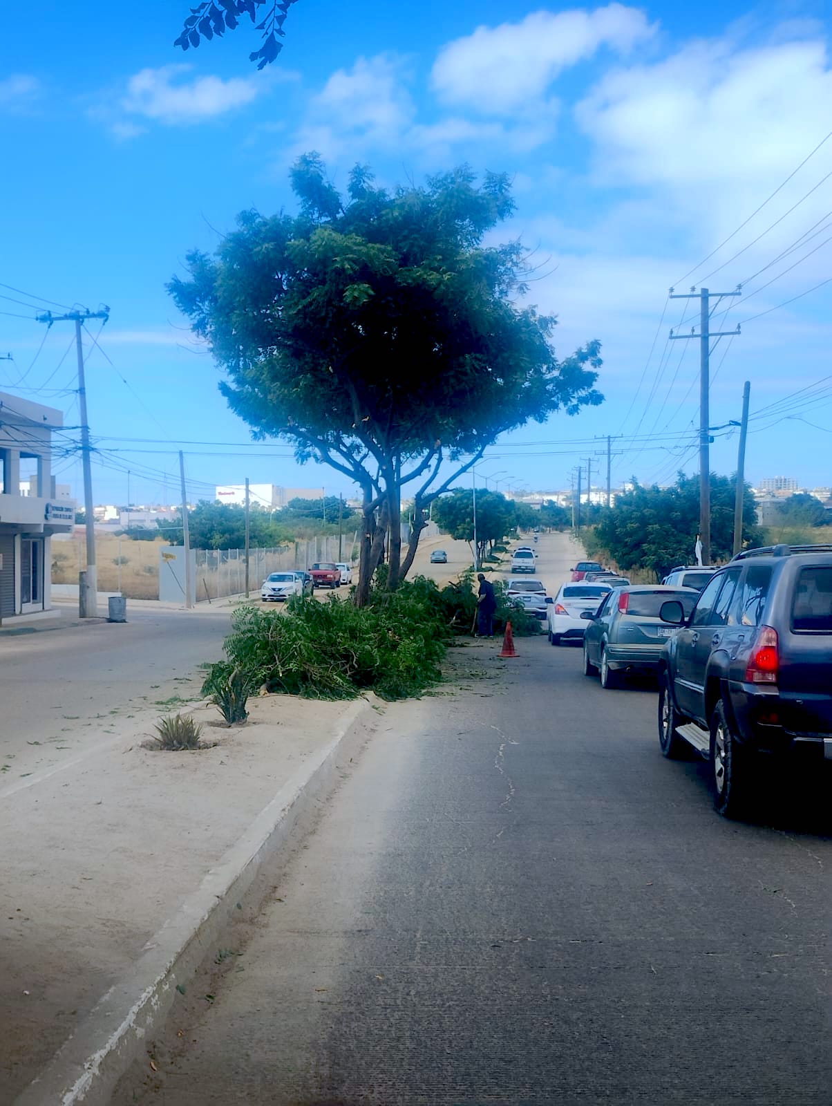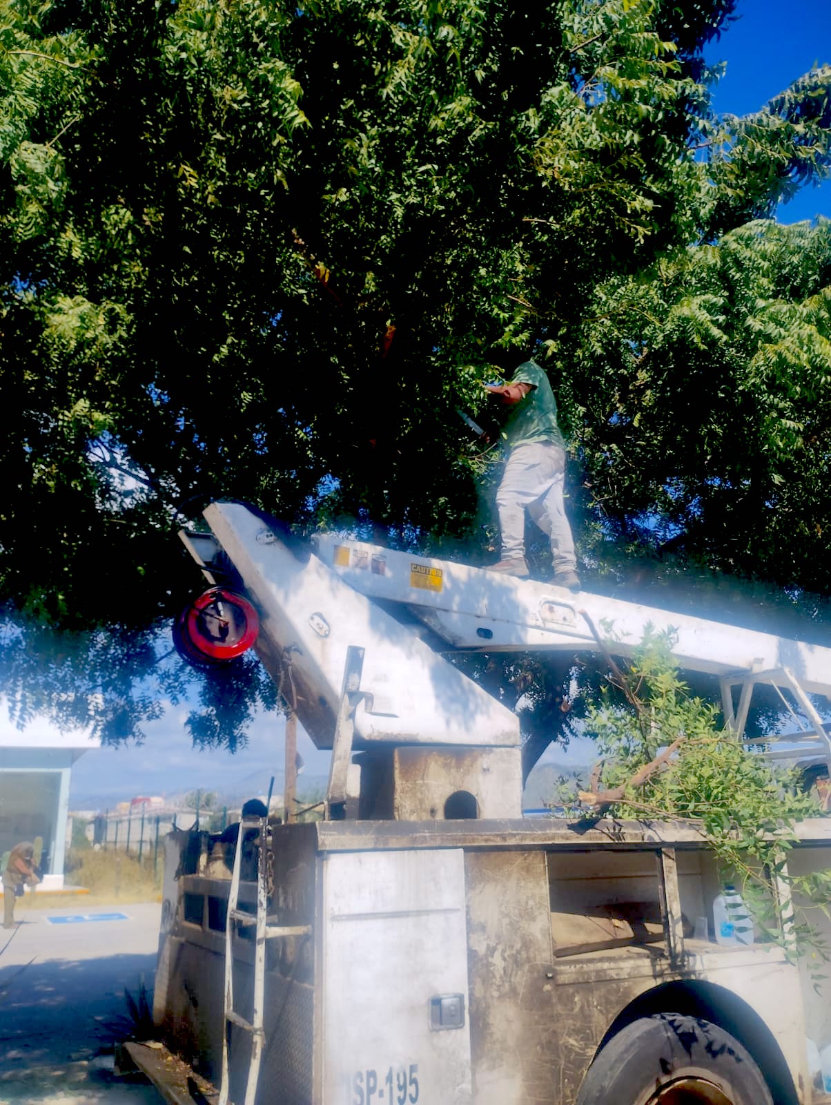 Como parte de estas acciones, se realizó la poda de 17 árboles en la avenida Chapultepec, así como el retiro del fruto de 7 palmeras de coco en la colonia Centro, labores que contaron con el apoyo de una grúa asignada al área para garantizar un trabajo seguro y eficiente.