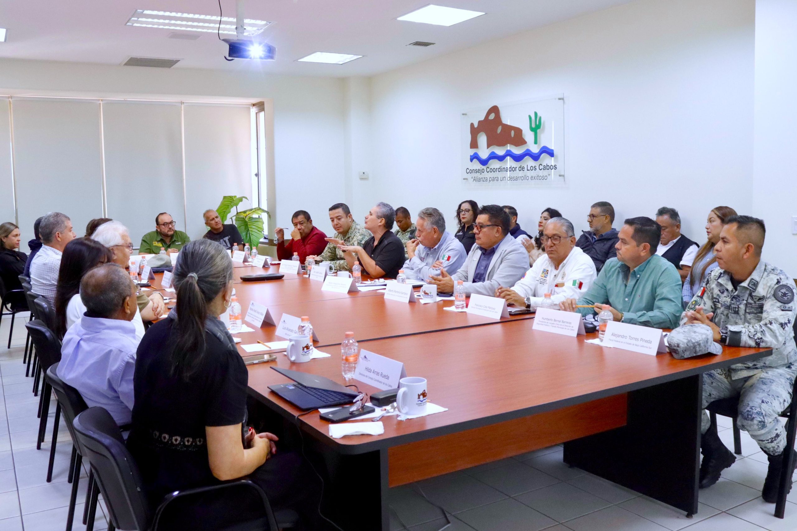 La reunión fue convocada por el Consejo Coordinador de Los Cabos, que encabeza Julio Castillo Gómez, y contó con la participación de la Secretaría de la Defensa Nacional (Defensa), Seguridad Pública, asociaciones civiles, el subsecretario estatal de Protección Civil, Héctor Amparano Herrera, así como el director municipal de Protección Civil, Francisco Cota Márquez.