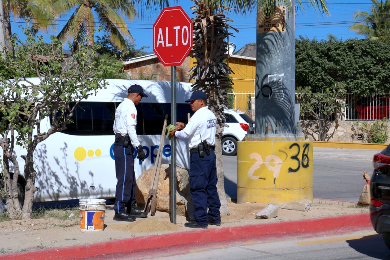 Los Cabos, Baja California Sur.– El XV Ayuntamiento de Los Cabos, a través de la Dirección General de Seguridad Pública, Policía Preventiva y Tránsito Municipal, puso en marcha un programa de instalación de señalética en vialidades de mayor flujo vehicular.
